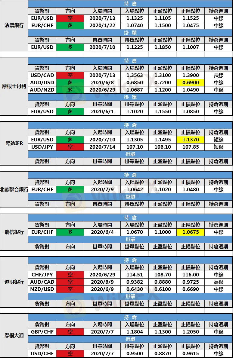 (3)瑞信銀行修改歐元/瑞郎多頭持倉止損至1.0675。