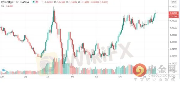 週四(7月16日)亞洲時段,美元指數震盪上漲,現交投於96.11一線。歐元兌美元窄幅整理,現交投於1.1397一線。