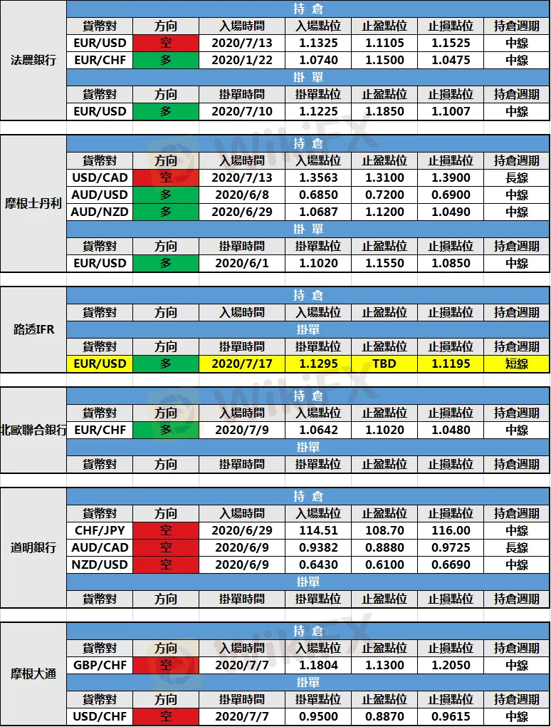掛單方面:(1)路透IFR新建歐元/美元多頭掛單,掛單點位。
