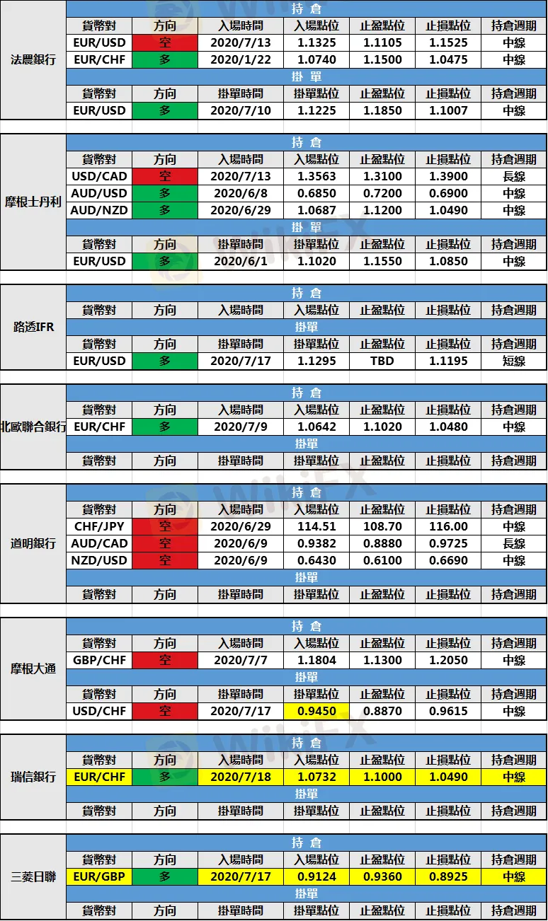 (1)瑞信銀行再次新增歐元/瑞郎多頭持倉,入場點位1.0732,止盈點位1.1000,止損點位1.0490。