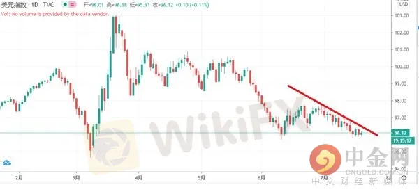 週一(7月20日)亞洲時段,美元指數震盪上漲,現交投於96.11一線。