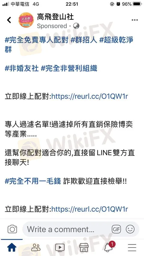 據受害者透露,他是通過臉書上的交友廣告(目前已換成“高飛登山社”繼續犯案)配對到一位名為Amo(毛毛)的陌生女子。