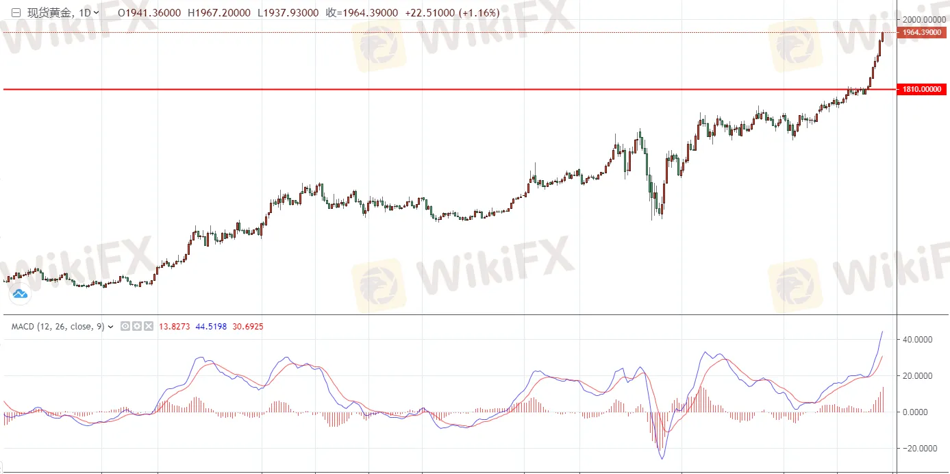摘要:黃金方面,週二(7月28日)亞市早盤,現貨黃金開啟暴走模式,在高位持續加速,金價日內進一步突破至1965美元,目前暫位於1964.39美元/盎司附近整理交投,接連刷新歷史新高。黃金持續刷新歷史新高的原因主要包括疫情加劇致使市場對於經濟復蘇擔憂,再疊加近期地緣政治風險急劇升溫,大有進軍2000大關之勢。