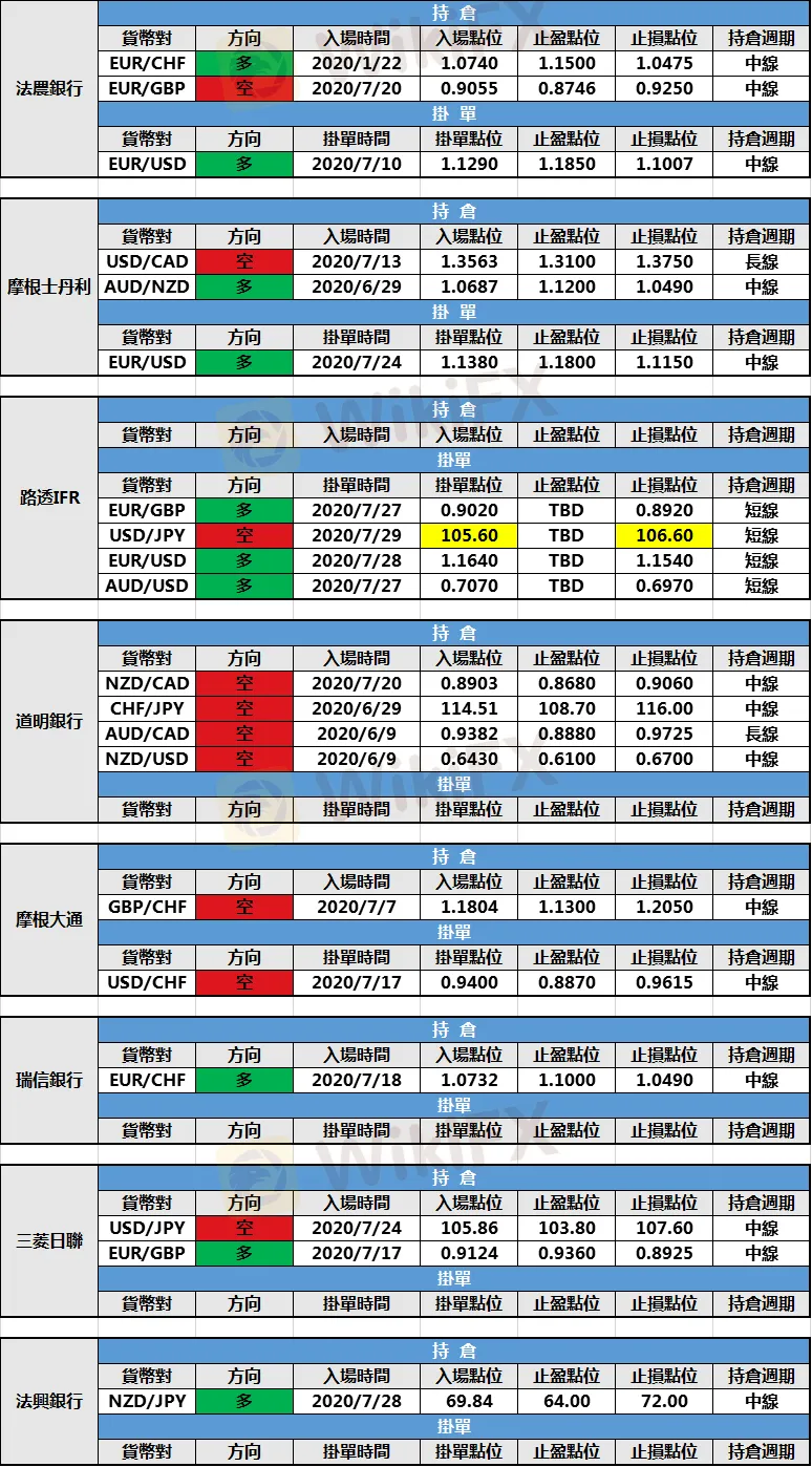 如下表所示:目前個投行持倉未變