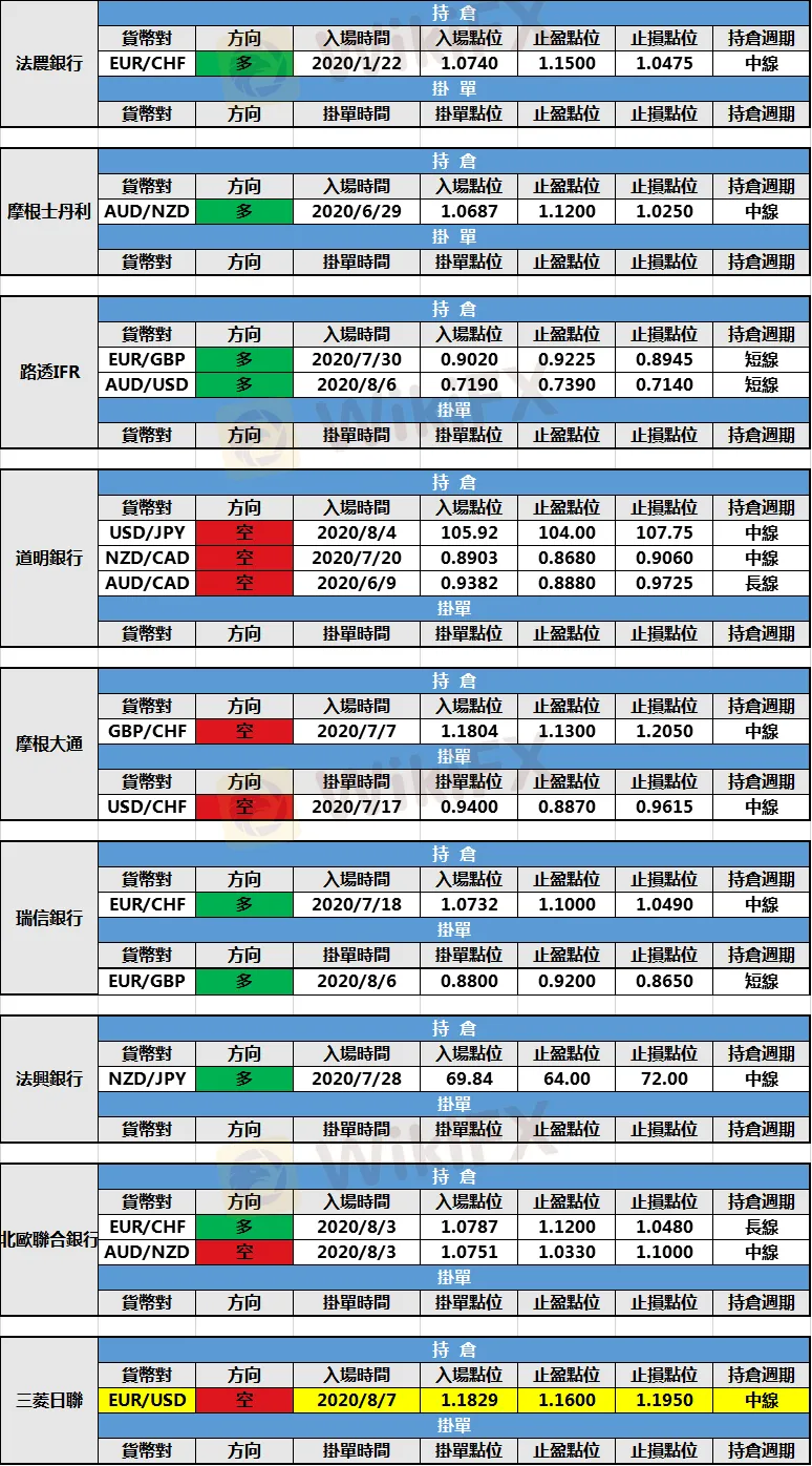 (1)三菱日聯新增歐元/美元空頭持倉,入場點位1.1829,止盈點位1.1600,止損點位1.1950。