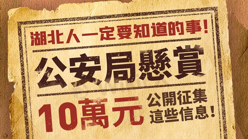 湖北人一定要知道的事:公安局懸賞10萬元公開徵集這些信息!