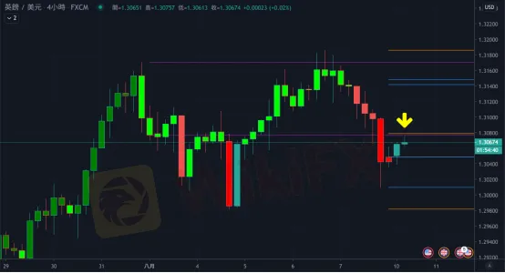 GBP/USD現價1.30680附近位置進場空單,防守上方1.30900位置,下看位置1.30100