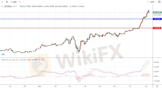 從技術角度來看,從7月21日開始的上升趨勢線2030美元提供了即時支撐,下一支撐看向2,000美元這一重要心理關口。