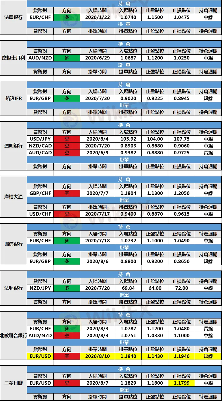 掛單方面:北歐聯合銀行新建歐元/美元空頭掛單,掛單點位1.1840,止盈點位1.1430,止損點位1.1940。