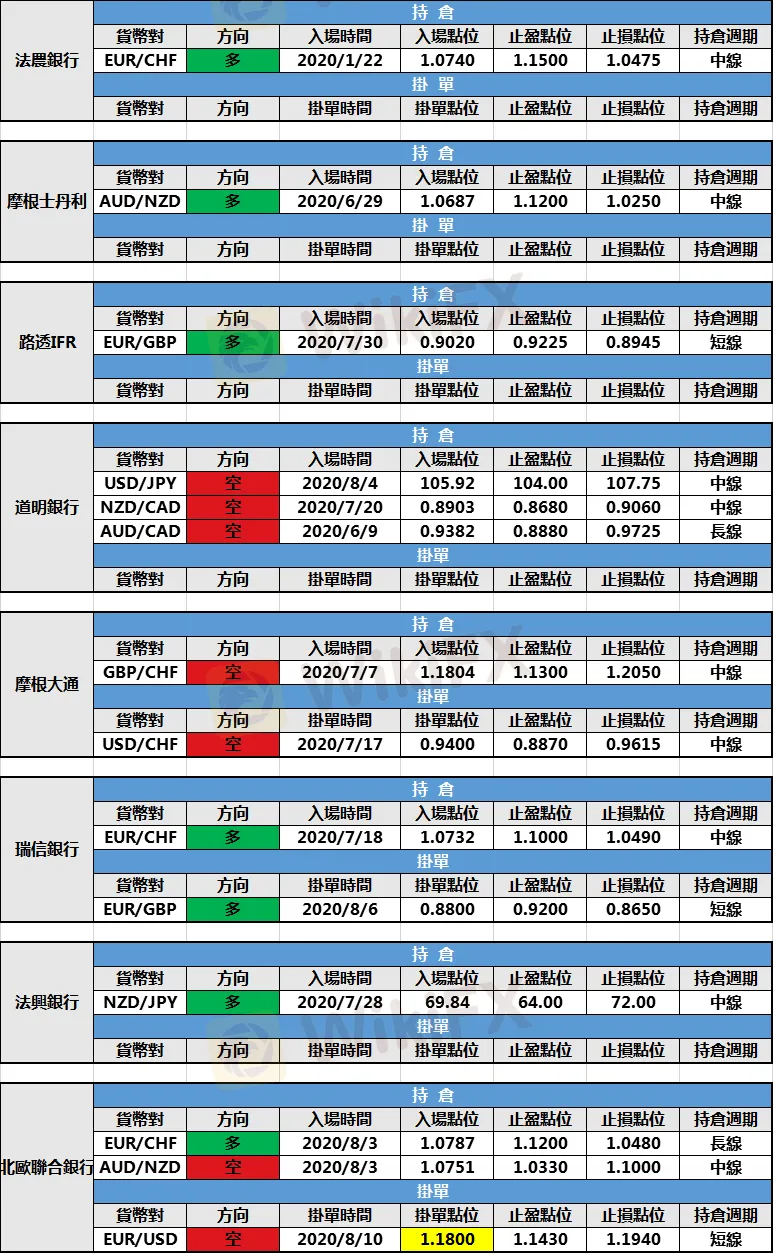 如下表所示:三菱日聯歐元/美元空頭持倉浮盈提前出局!