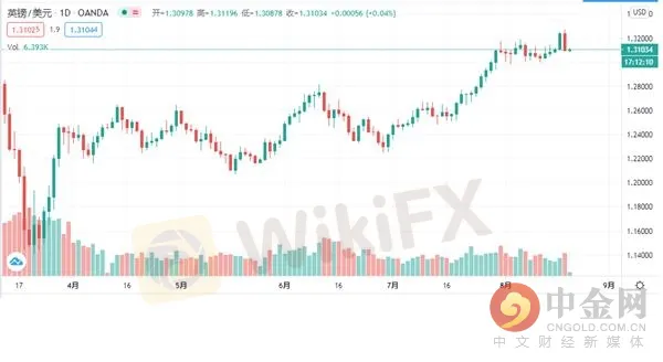 週四(8月20日)亞洲時段,美元指數沖高回落,現交投於92.98一線。英鎊兌美元窄幅震盪整理,現交投於1.3103一線。