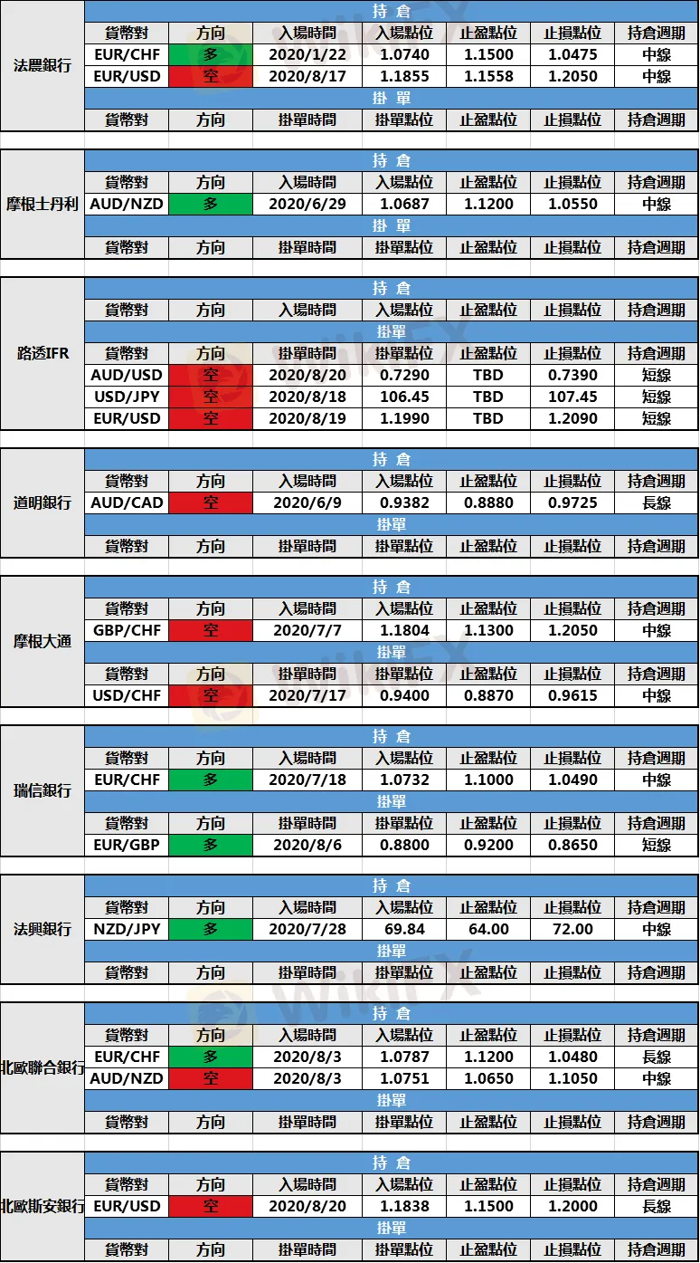 (1)北歐聯合銀行修改澳元/紐元空頭持倉止損至1.0650。