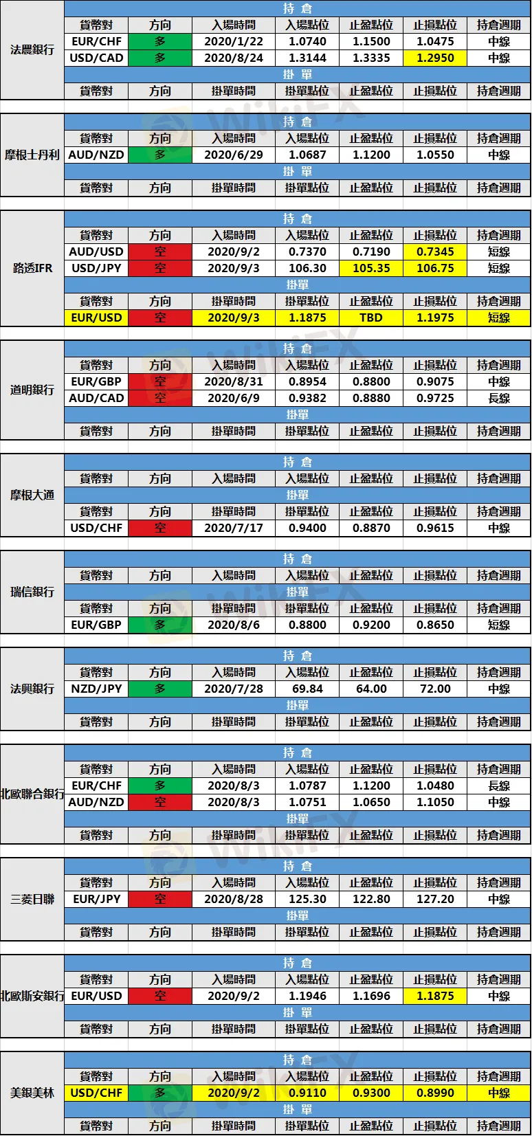 (1)法農銀行調整美元/加元多頭持倉止損點位至1.2950。