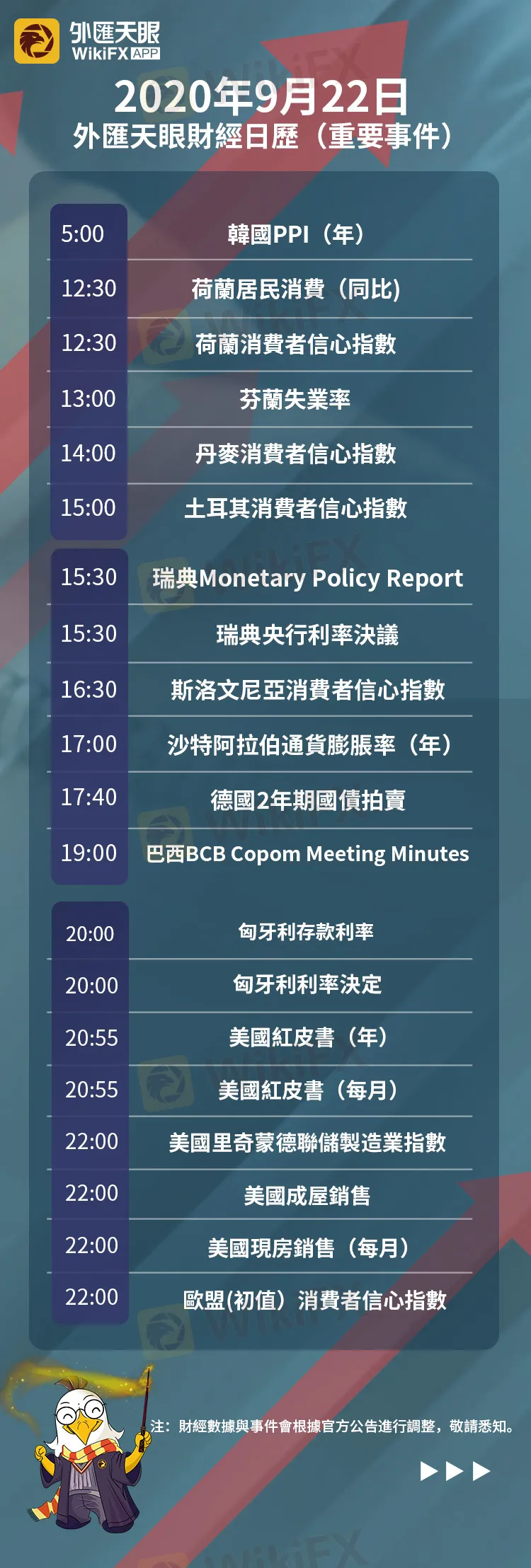 以下為9月22日(週二)重要財經事件,敬請關注外匯天眼APP,或官方網站!