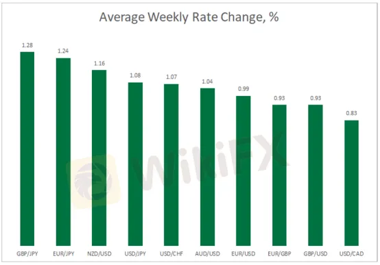如圖,可見GBPJPY和EURJPY變化率最大。前4最具趨勢性的貨幣對中,日元系佔據了3組。當然,貨幣對變化率不是唯一指標。