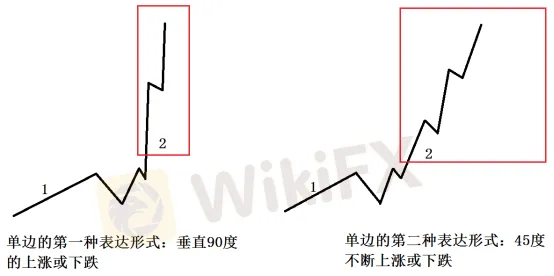 第二種單邊的斜率一般是45度不斷上揚或下挫的n型走勢,結構穩健老成,一般是數據前的預期走勢或數據後的消化走勢。
