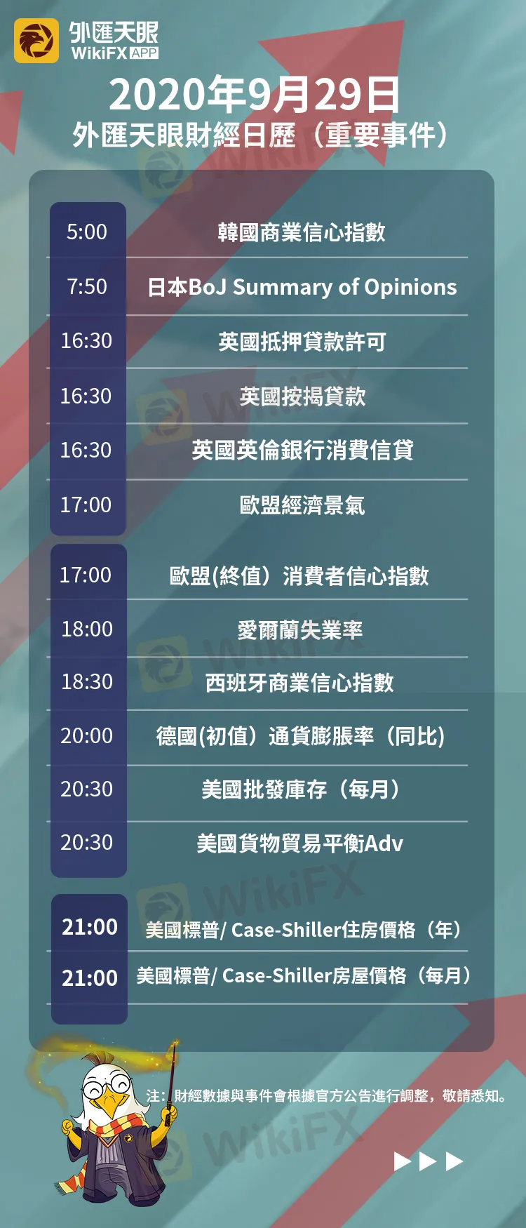 以下為9月29日(週二)重要財經事件,敬請關注外匯天眼APP,或官方網站!