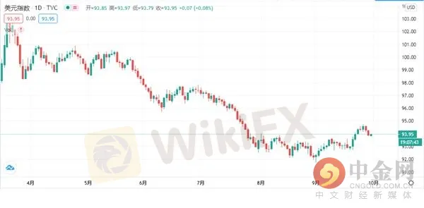 摘要:週三(9月30日)亞洲時段,美元指數呈現震盪上漲走勢,現交投於93.94一線。