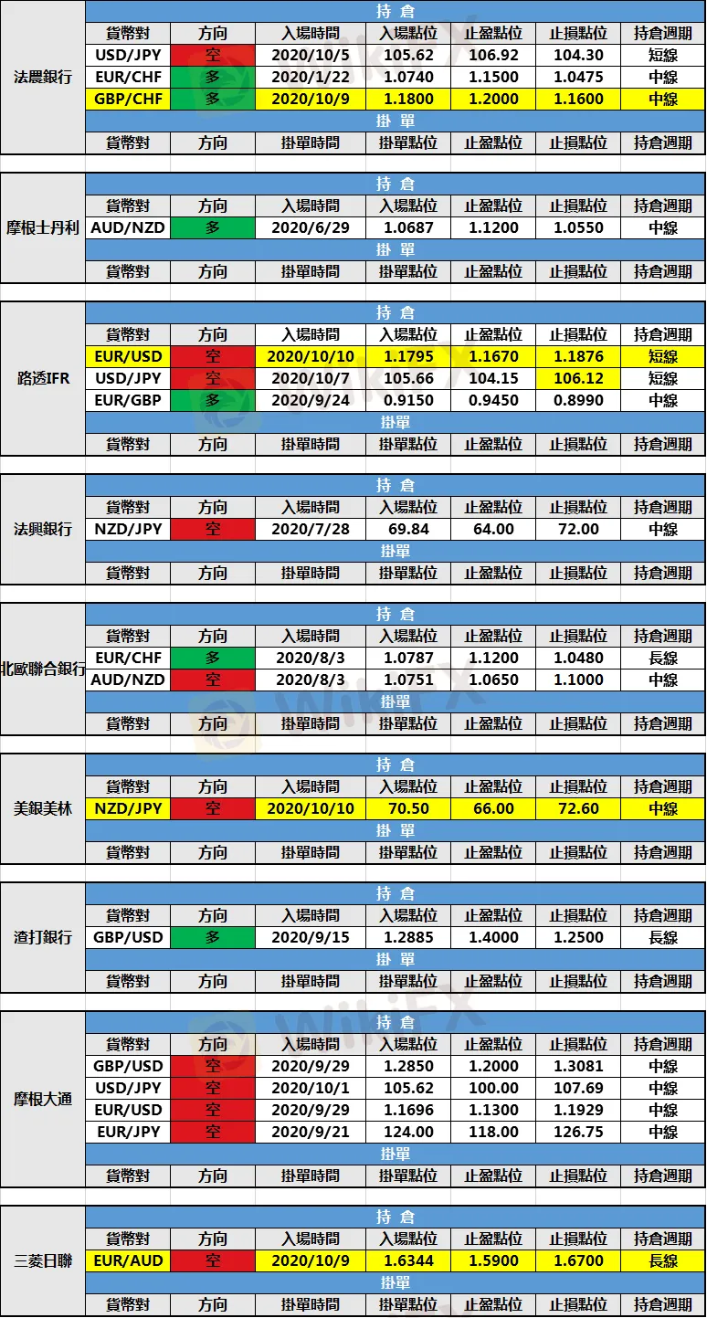 (4)美銀美林新增紐元/日元空頭持倉,入場點位70.50,止盈點位66.00,止損點位72.60。