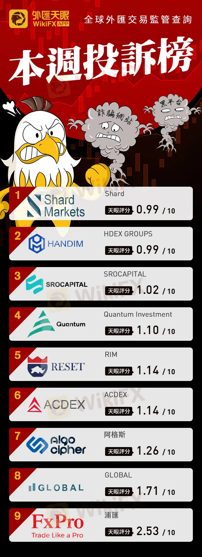 本週,外匯天眼小編收到投資者對19家不良公司的諮詢與投訴,包括9家平台,10家詐騙網站,以下一一羅列,注意規避遠離!