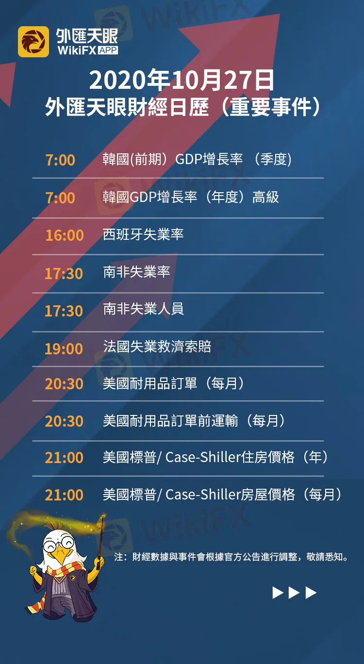 以下為10月27日(週二)重要財經事件,敬請關注外匯天眼APP,或官方網站!
