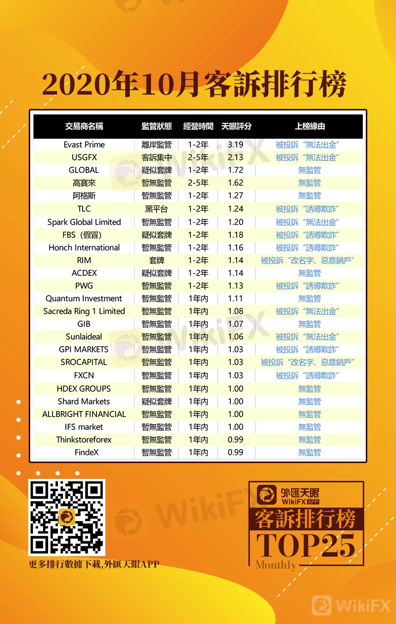 在剛剛過去的10月份,外匯天眼纍計收到投資者對數十家平台的投訴,其中不乏經營年限短,暫無外匯監管的平台。