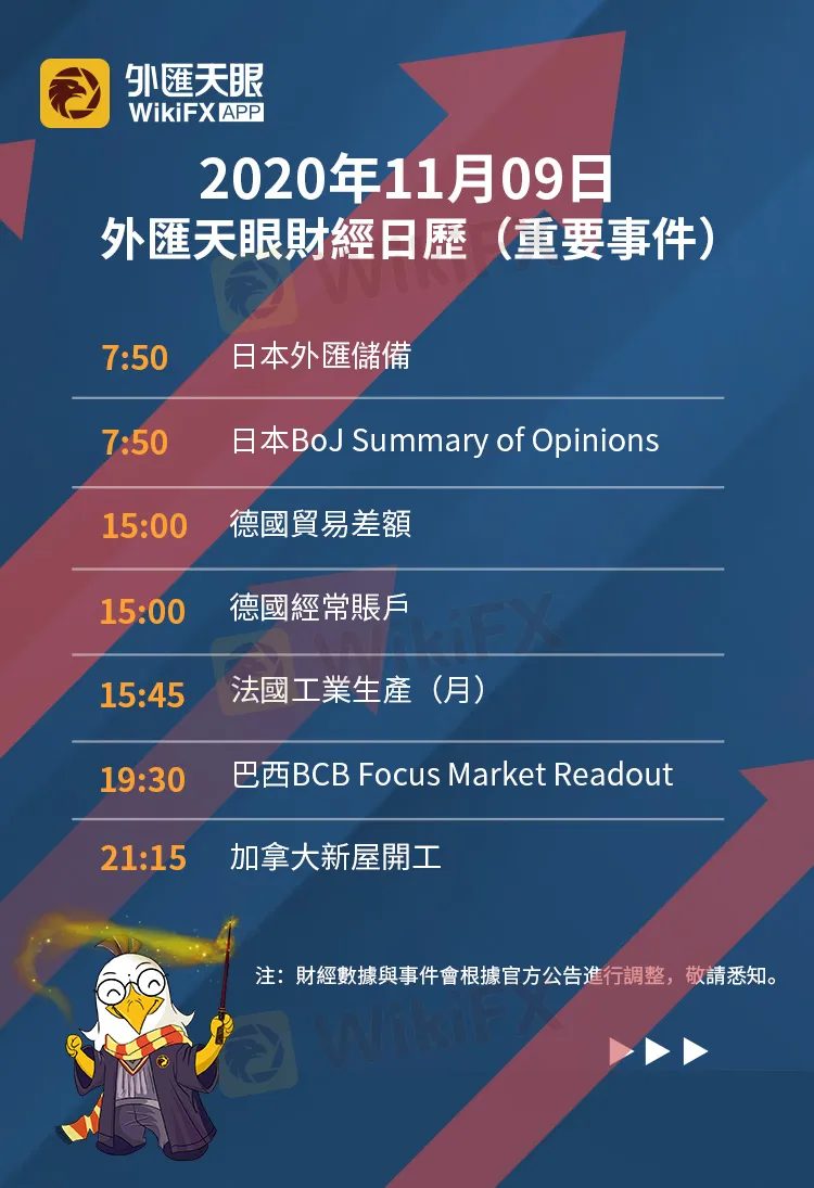 以下為11月9日(週一)重要財經事件,敬請關注外匯天眼APP,或官方網站!