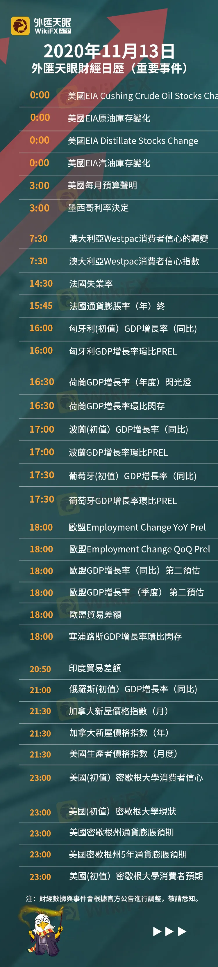 以下為11月13日(週五)重要財經事件,敬請關注外匯天眼APP,或官方網站!