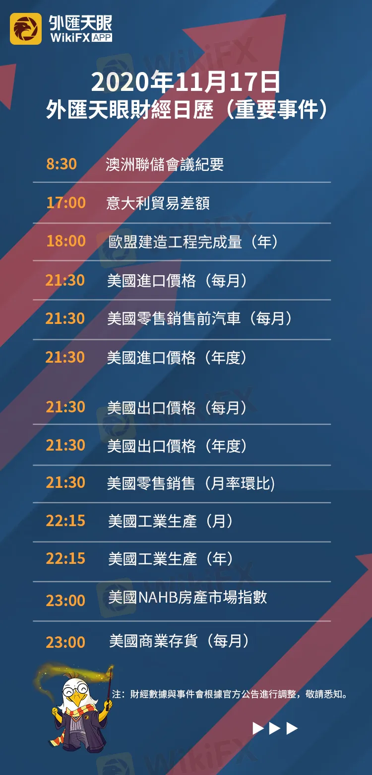 以下為11月17日(週二)重要財經事件,敬請關注外匯天眼APP,或官方網站!