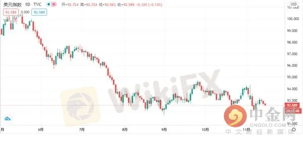 摘要:週一(11月16日)亞洲時段,美元指數呈現小幅震盪下跌走勢,現交投於92.57一線。