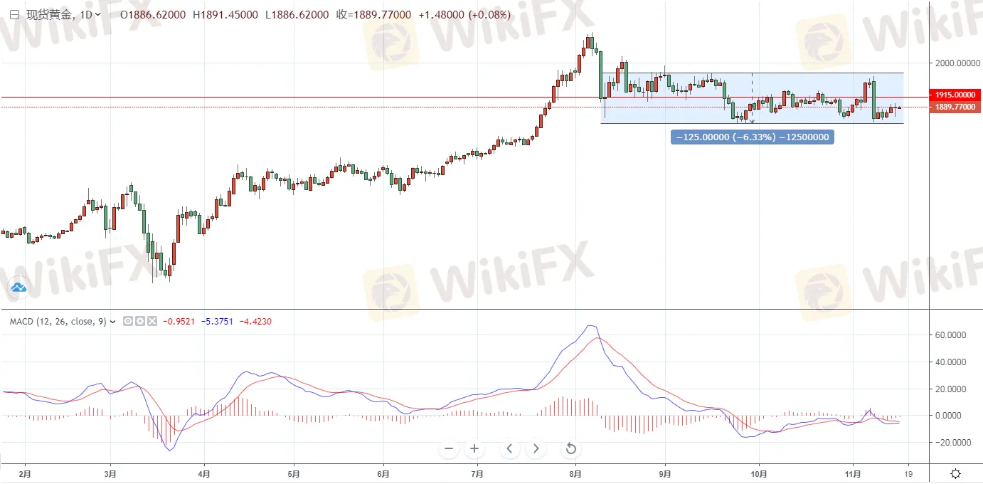 摘要:黃金方面,週二(11月17日)亞市早盤現貨黃金延續近期的震盪盤整,金價暫位於1890美元/盎司附近整理交投。雖然Moderna成為第二家宣佈疫苗測試結果有效的制藥商的消息傳出,但是金價並未出現此前的暴跌行情,但是無疑是限制了金價的反彈之勢。