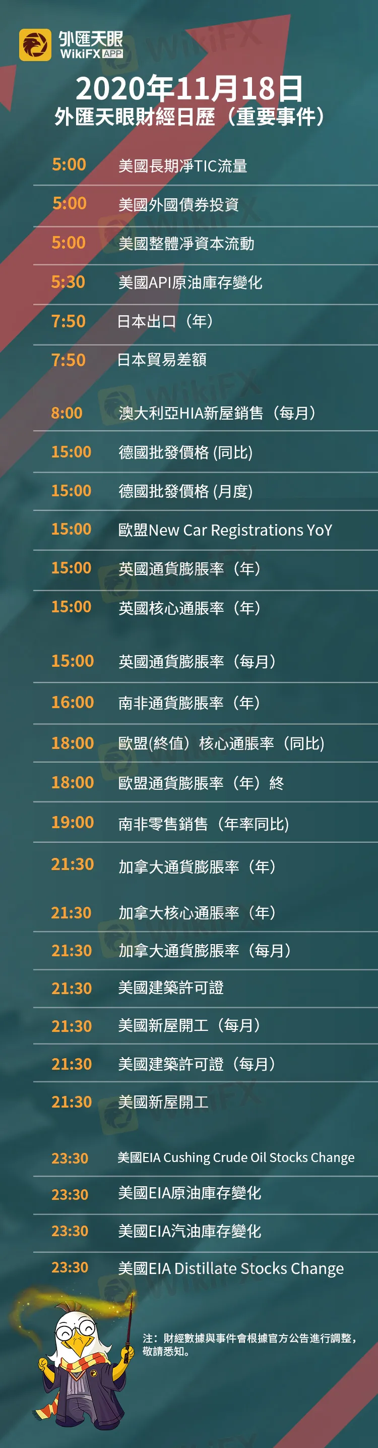 以下為11月18日(週三)重要財經事件,敬請關注外匯天眼APP,或官方網站!