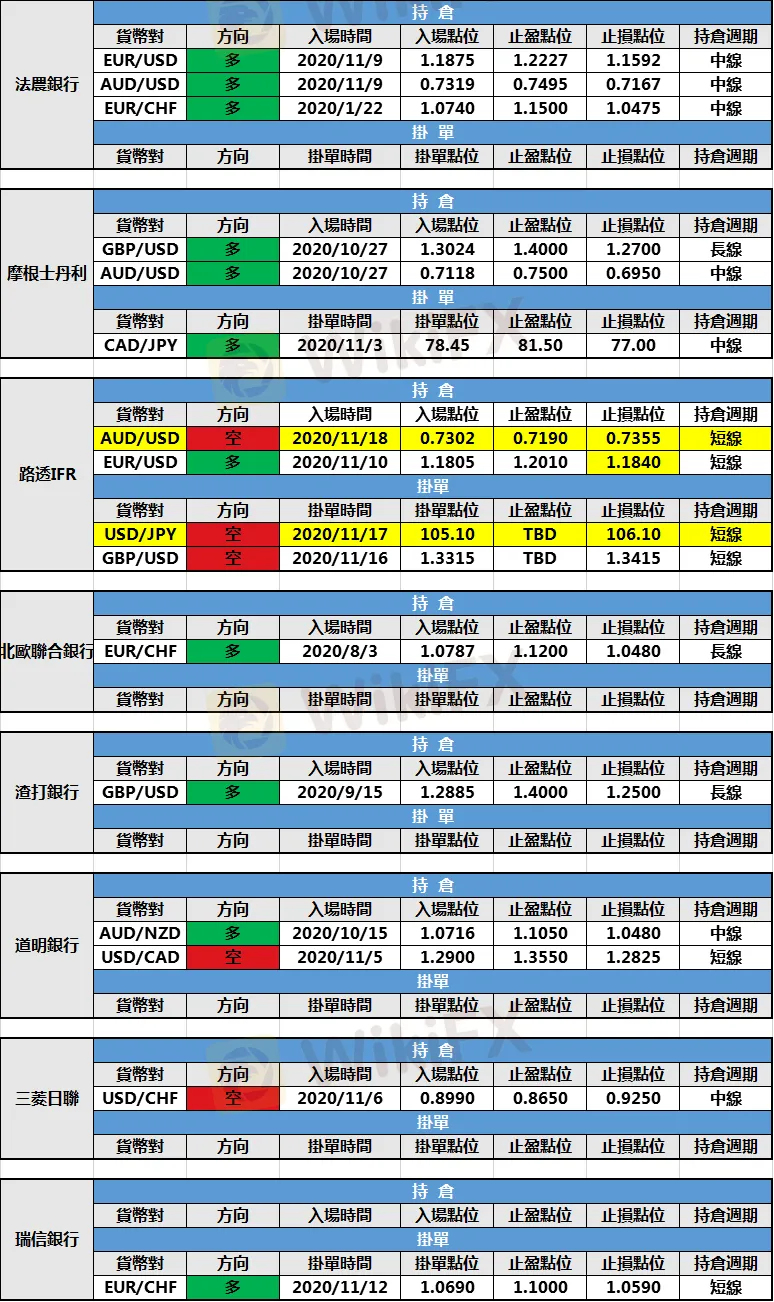 (1)路透IFR新增澳元/美元空頭持倉,入場點位0.7302,止盈點位0.7190,止損點位0.7355。並修改歐元/美元多頭持倉止損至1.1840。