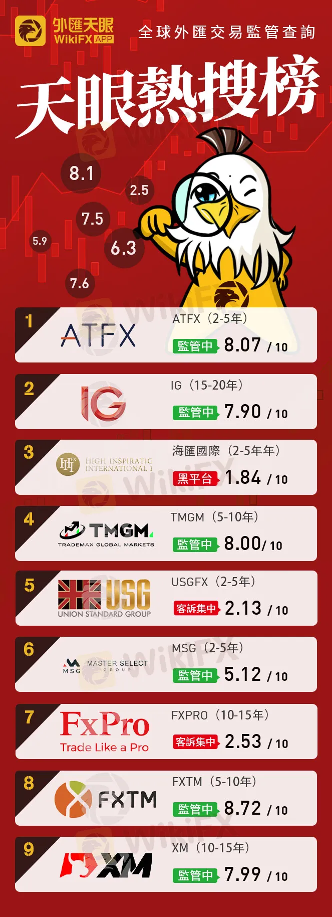 天眼熱搜,展現近一週大家比較密切關注,或高頻率搜索的交易商,包羅好壞優劣之等,正面例子可做良性參考,反面教材可做預警提示。