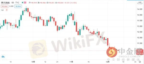 摘要:週三(12月09日)亞洲時段,美元指數呈現震盪下跌走勢,現交投於90.83一線。