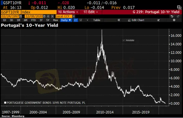 葡萄牙國債週二上漲,推動該國基準國債收益率首次跌至0%。如果放在十年前的歐債危機期間,這一幕顯然根本難以想像!
