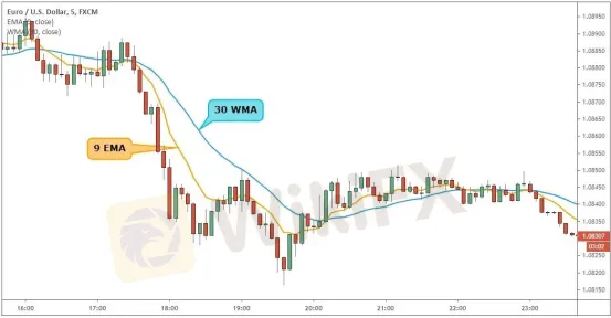 9EMA是短期均線,30WMA是長期均線,兩根均線之間的空白區域就是尋找交易信號的區域。
