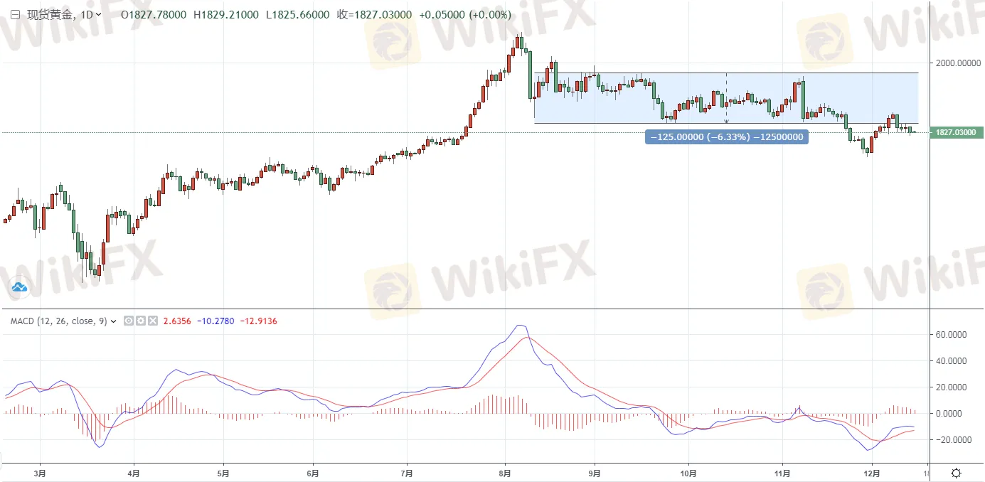黃金方面,週二(12月15日)亞市早盤現貨黃金經過昨日的下挫後暫維持窄幅震盪,由於新冠疫苗方面取得更多進展引發了市場的樂觀情緒,增強了人們對經濟復蘇的信心,致使金價昨日再度下挫失守1830關口。
