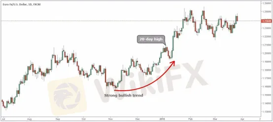 20天的高位規則(當天價格處於近20個交易日最高位)是識別趨勢強勁的市場的絕佳方法,並且是發現趨勢的簡單方法。
