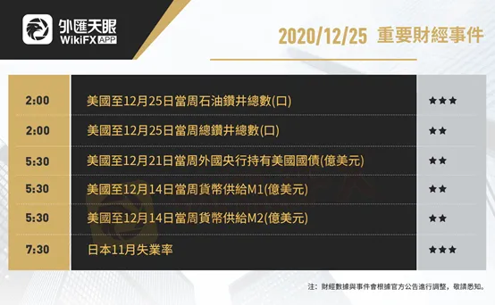以下為12月25日(週五)重要財經事件,更多資訊,請關注外匯天眼APP或官方網站!