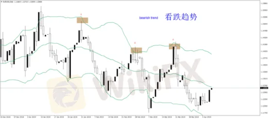 那麼,如何利用布林帶進行交易呢?在看跌趨勢中,應注意以下幾點:
