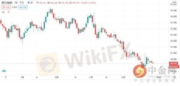 摘要:週一(12月28日)亞洲時段,美元指數呈現窄幅震盪,現交投於90.16一線。