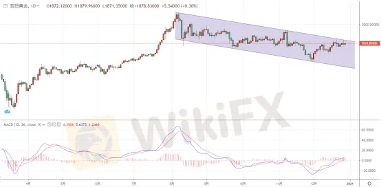 摘要:黃金方面,週二(12月29日)亞市早盤現貨黃金經過昨日的沖高回落後今天小幅走高,目前暫報1878.53美元/盎司。由於美國總統特朗普簽署了一項期待已久的大流行病援助法案,美元下跌,一度刺激金價衝破1900美元,但是此後利好兌現情緒回落,金價應聲回落。
