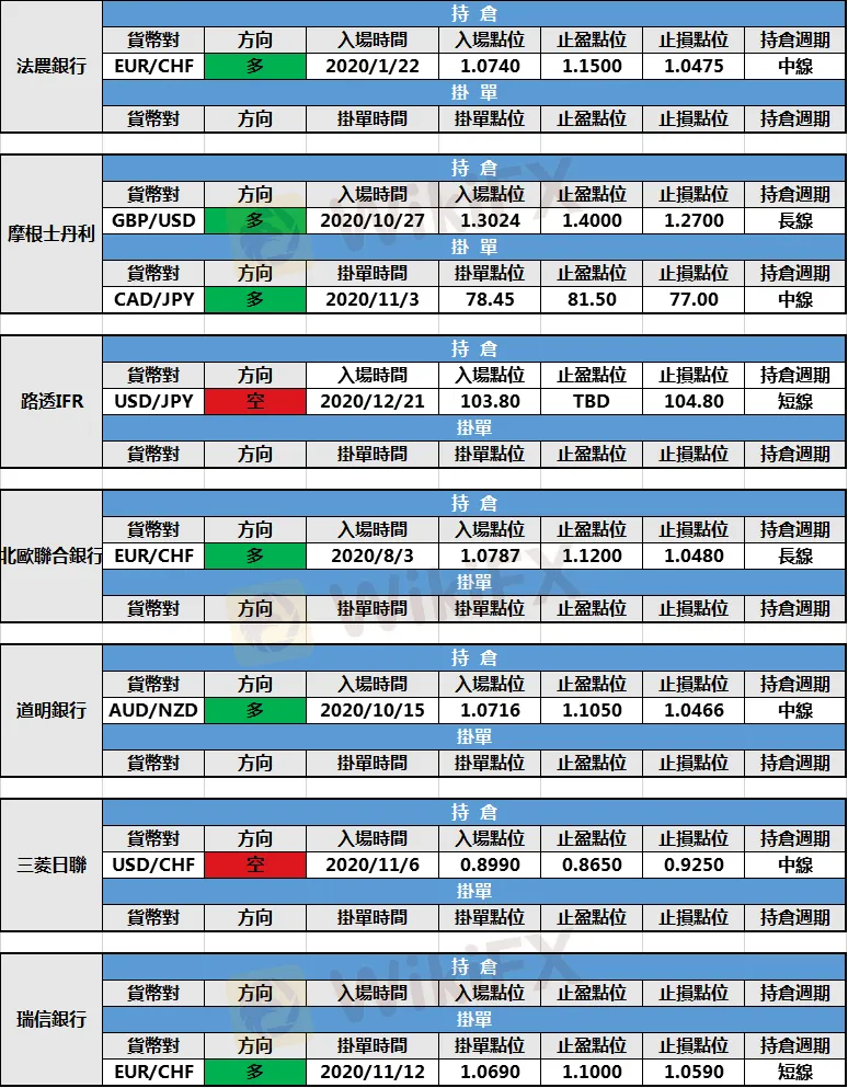 美元疲弱,非美貨幣繼續持強,投行持倉及掛單依舊不變。
