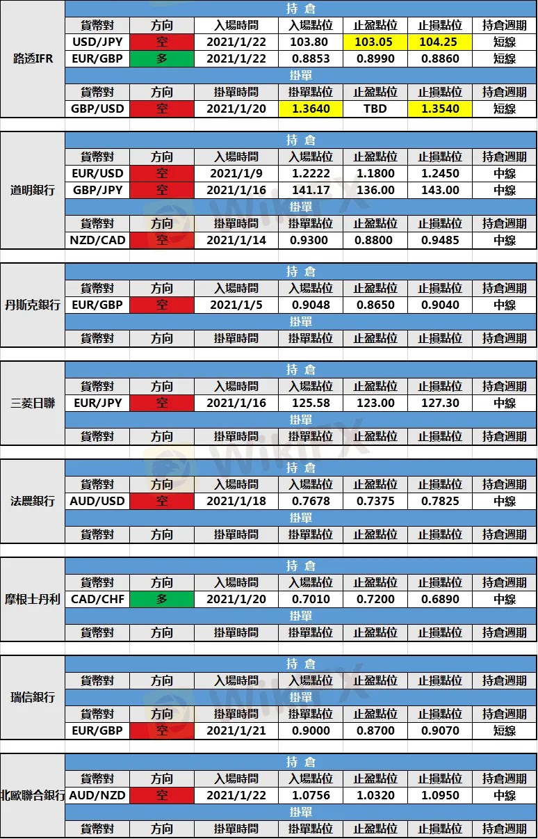 美元指數走高後小幅回落整理,非美貨窄震,路透IFR修改美元/日元空頭持倉止盈,修改英鎊/美元空頭掛單點位及止損位。