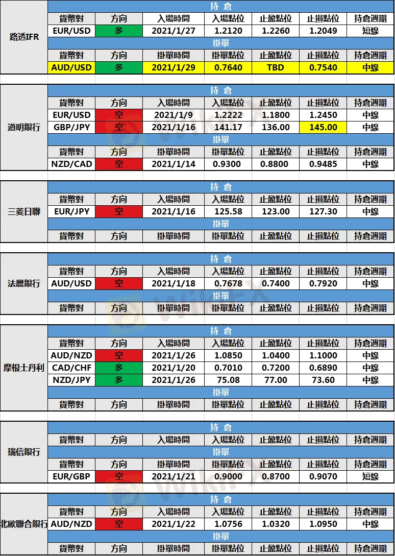 (1)路透IFR新增澳元/美元多頭掛單,掛單點位0.7640,止盈點位暫未設定,止損點位0.7540。
