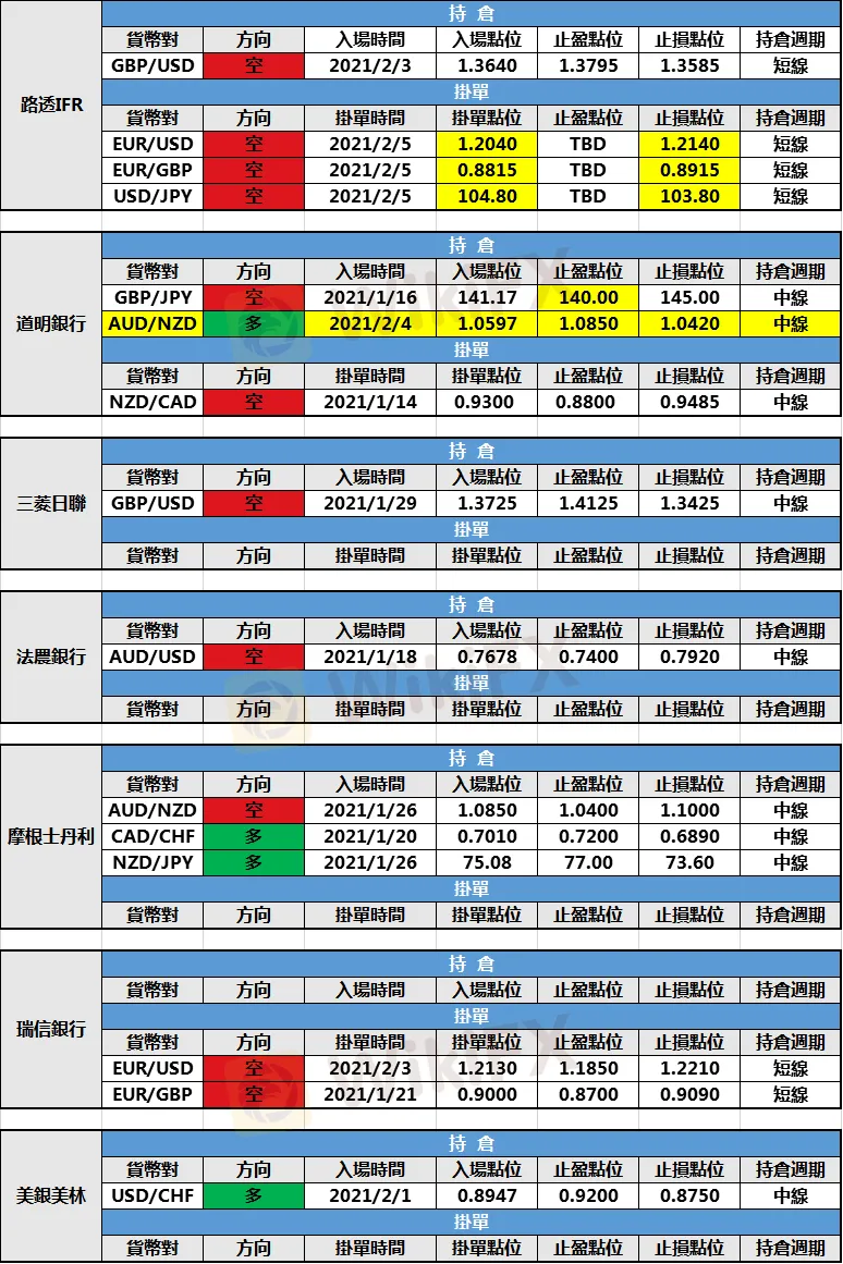 (1)道明銀行新增澳元/紐元多頭持倉,入場點位1.0597,止盈點位1.0850,止損點位1.0420。
