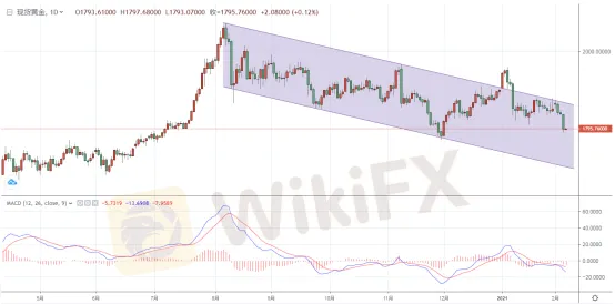 黃金方面,週五(2月5日)亞市早盤現貨黃金經過昨日的暴跌之後暫維持窄幅震盪,位於千八關口下方運行,目前暫報1795.36美元/盎司。由於美經濟數據強勁,此外美元上漲和美國國債收益率也均削弱了金價的吸引力,致使黃金失守千八大關。