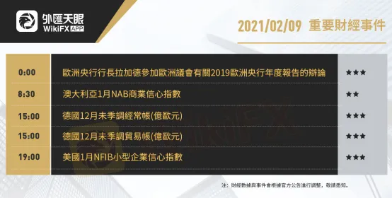 以下為2月9日(周二)重要財經事件,更多資訊,請關注外匯天眼APP或官方網站!