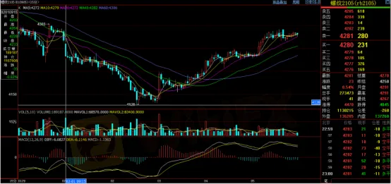 螺紋2105主力合約本周演繹了一顆上影18點下影145點實體12點的周陽星,收盤4285較前周漲了18點,周漲幅僅僅只是區區的0.42%。但如果你能抓住4150—4170這一區間段的無聊買入點位,你的收穫一定不是這區區的0.42%。但這一無聊的買入,一定是耐心等待而來,它也在我們過往的策略中。
